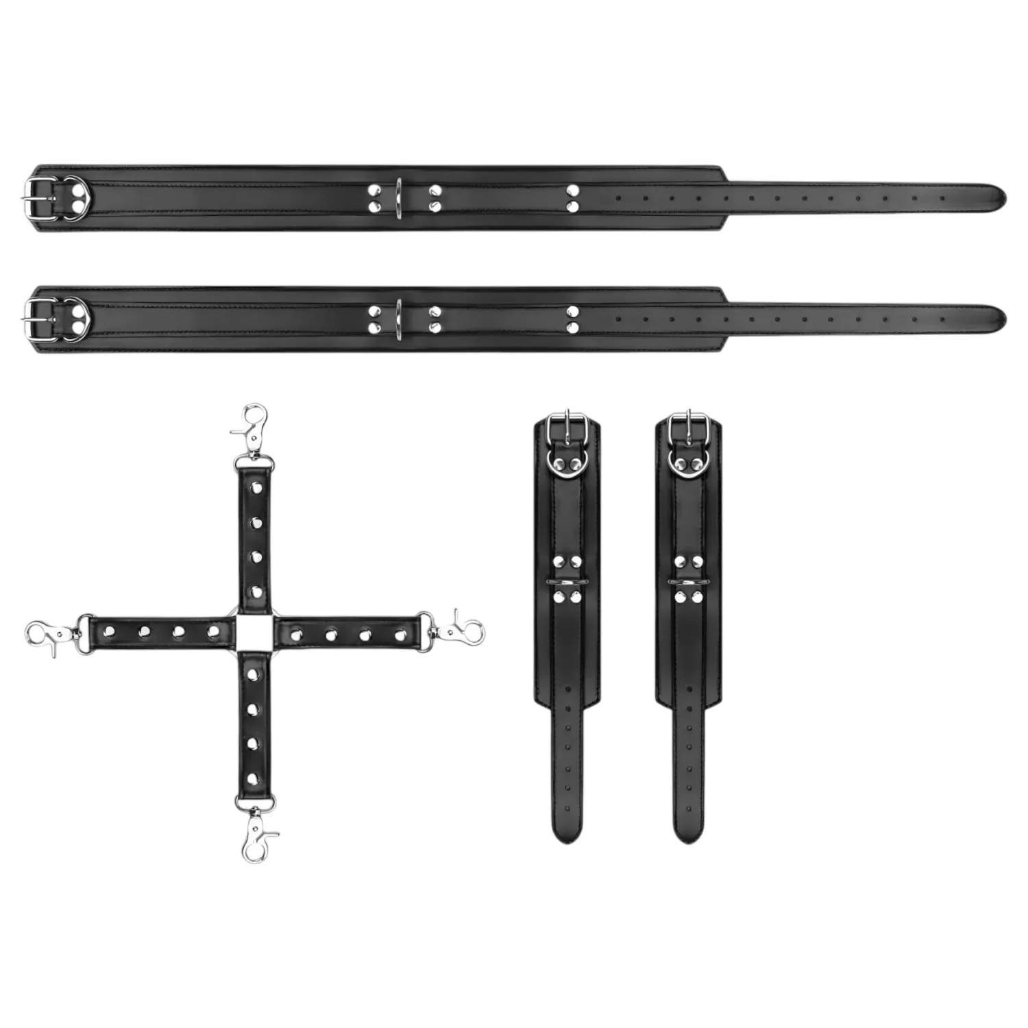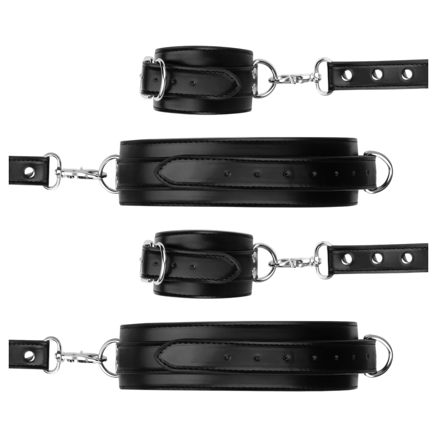 • Teljes kontroll: A kéz- és lábbilincsek összekapcsolásával partnered mozgása korlátozottá válik, fokozva az alávetettség élményét.