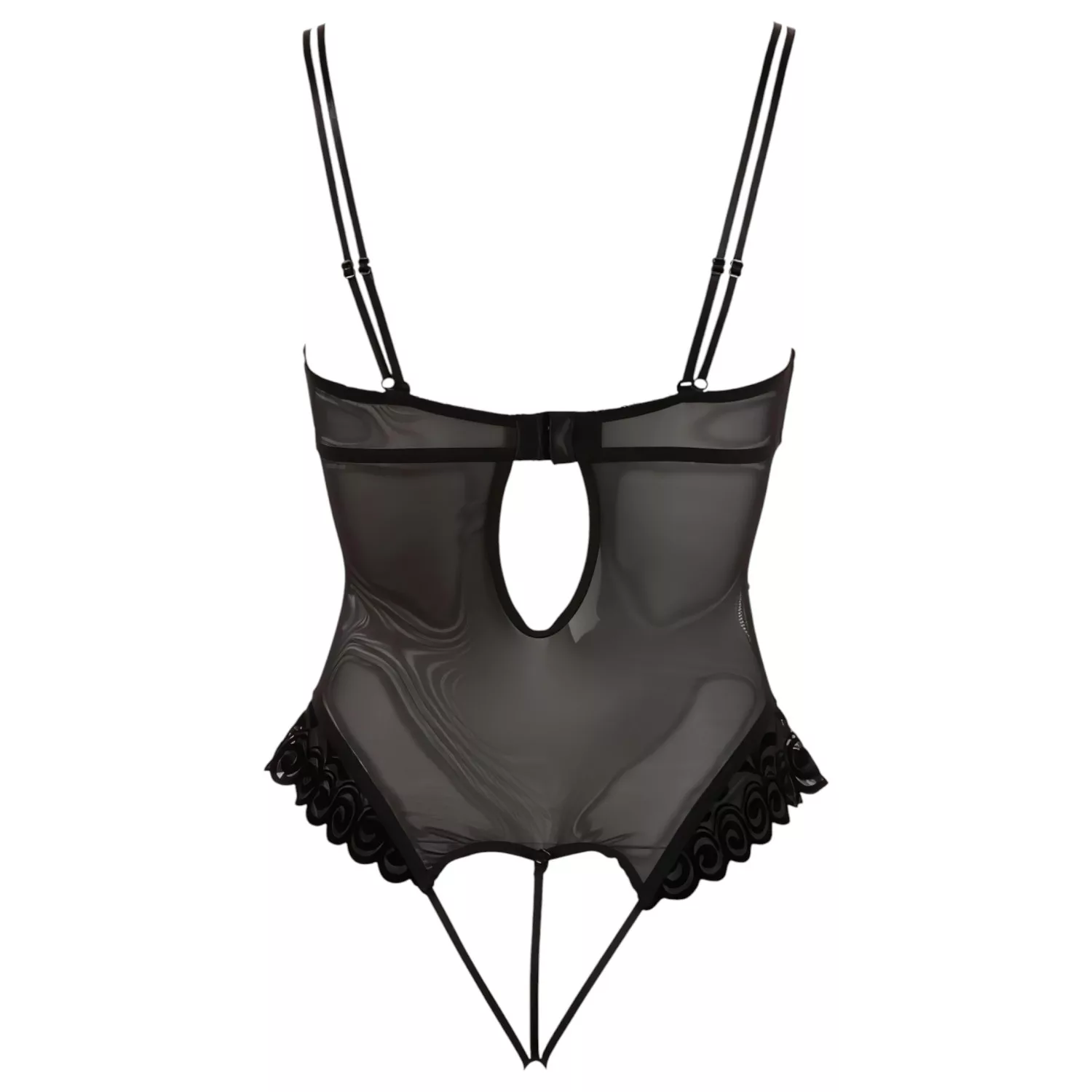 • Variálható mellrész: A felső, puha, bársonyos rész lepattentolható, így a keblek láthatóvá válnak, és a body mellemelőssé válik.