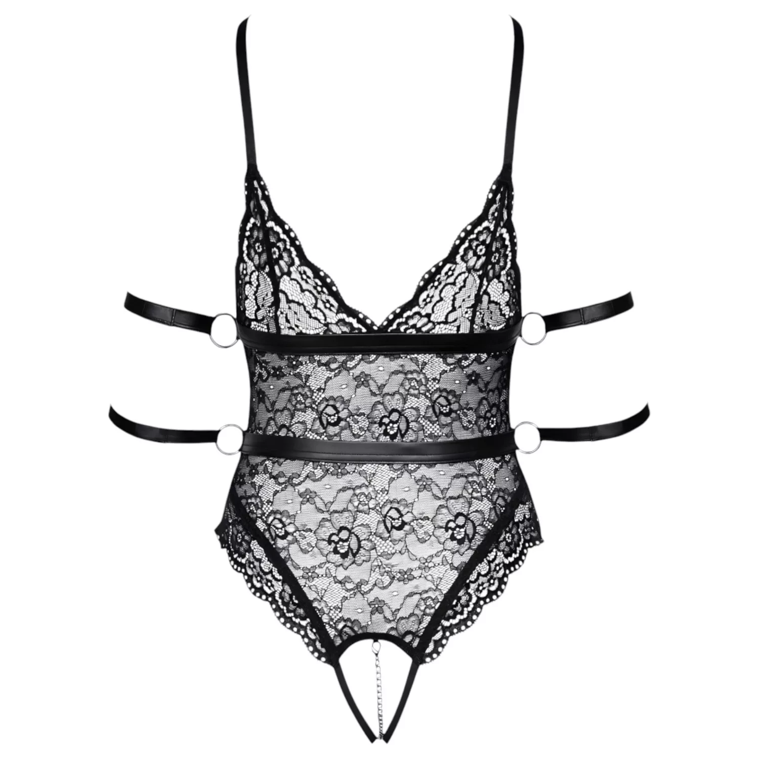 Cottelli Bondage - nyitott csipke body (fekete)