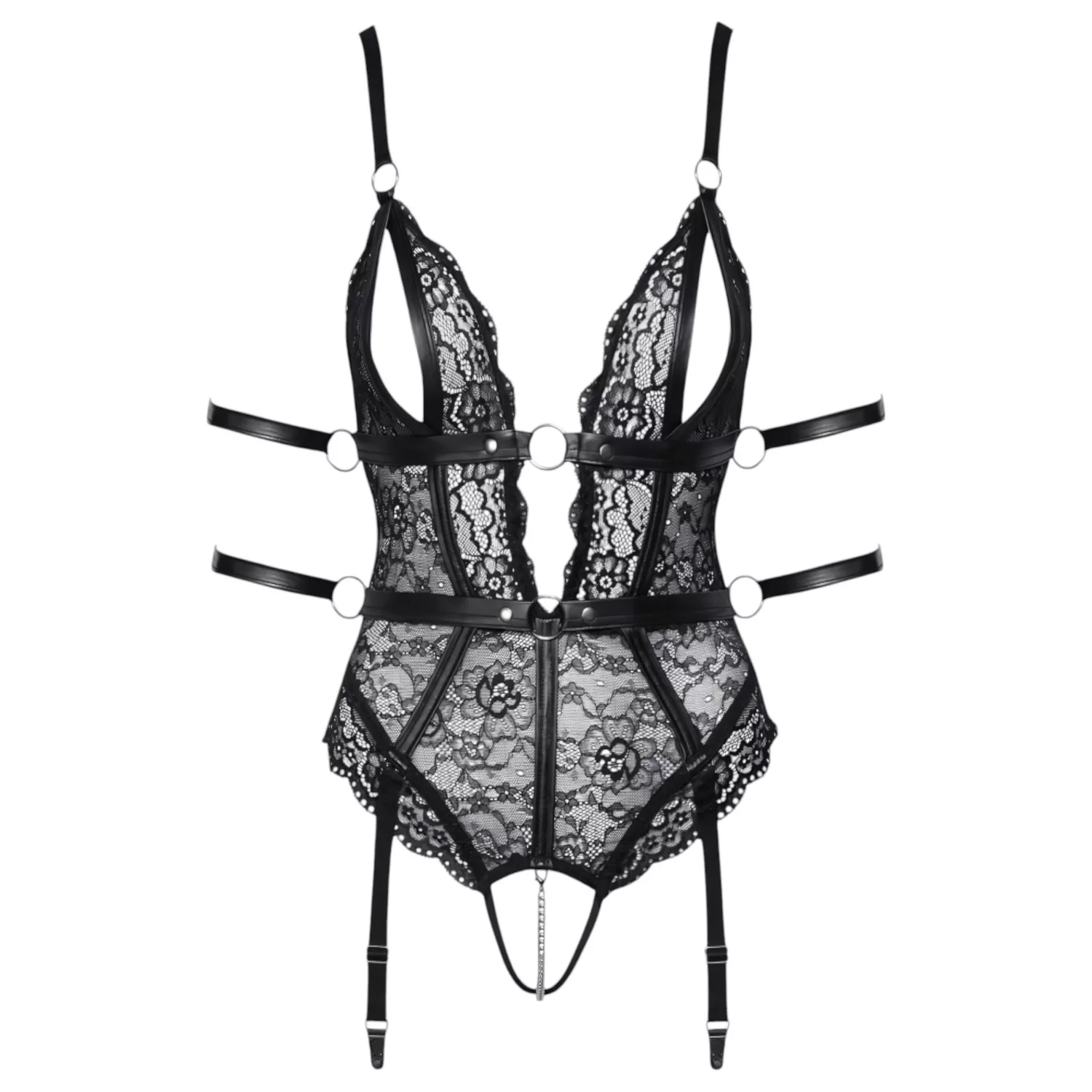 Cottelli Bondage - nyitott csipke body (fekete)