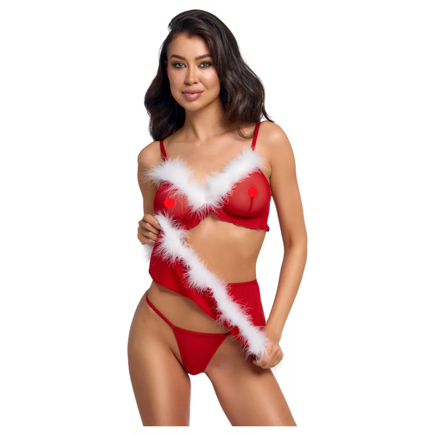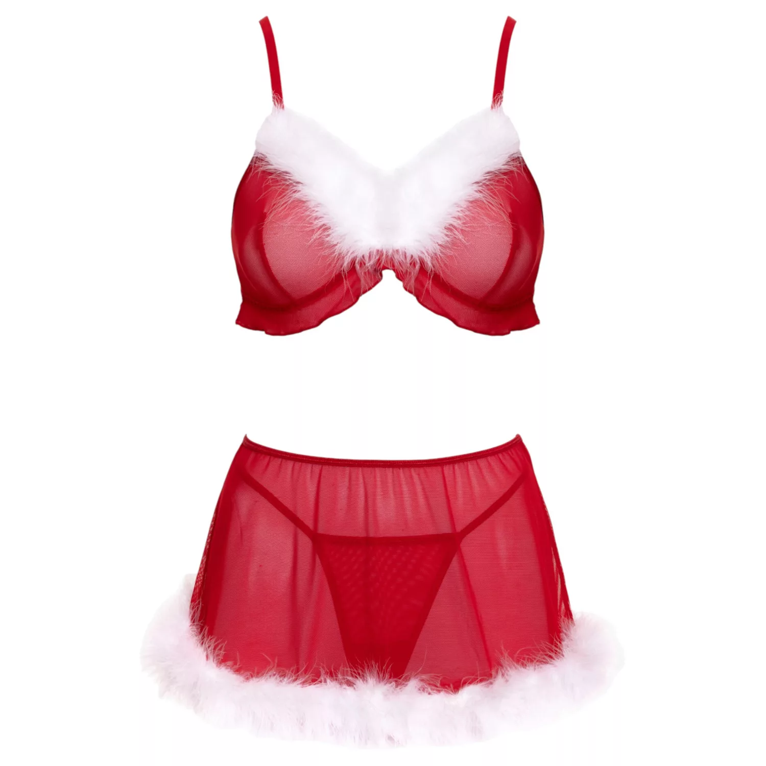Cottelli - 3 részes karácsonyi fehérnemű szett tolldíszítéssel ünnepi és érzéki választás, amely a csábítást és az eleganciát tökéletesen ötvözi.