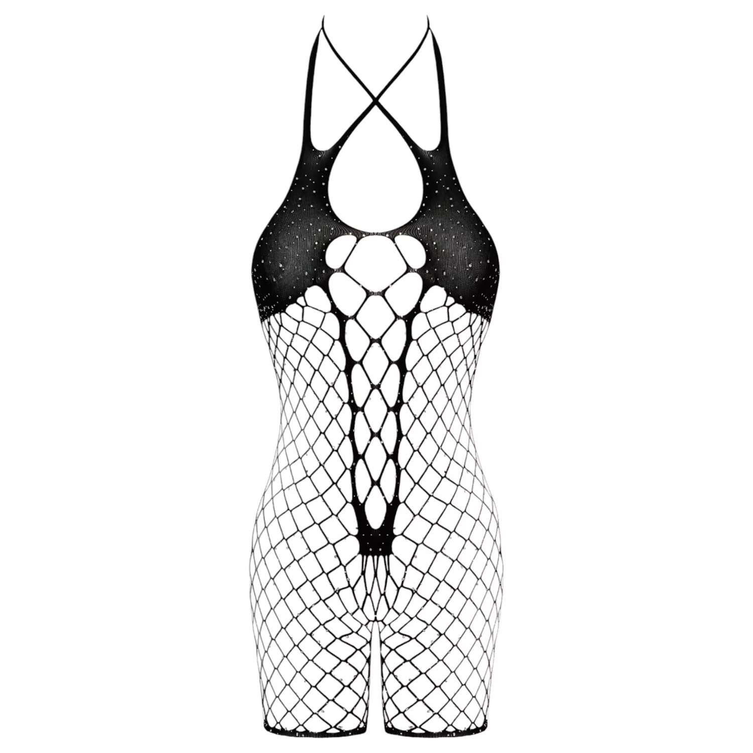 • 1 darab fekete hálós, strasszokkal díszített body
