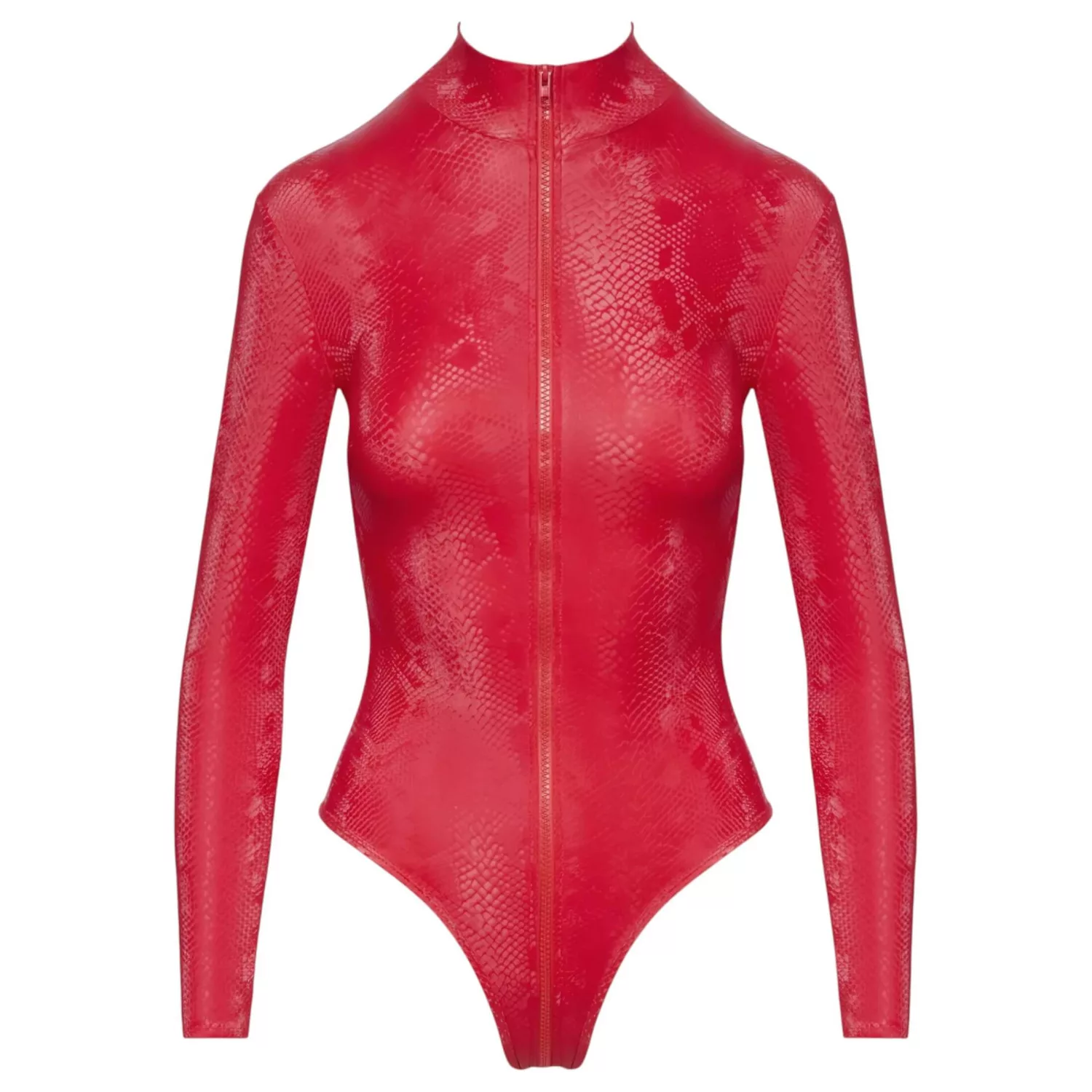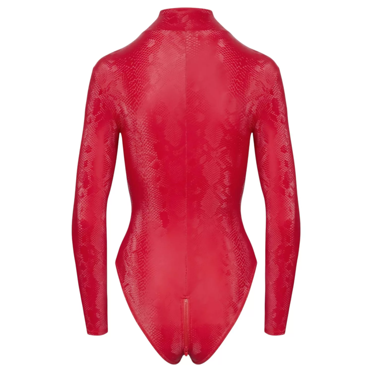 A Cottelli PARTY szűk és vad body-ja divatos vörös kígyóbőr megjelenésben.