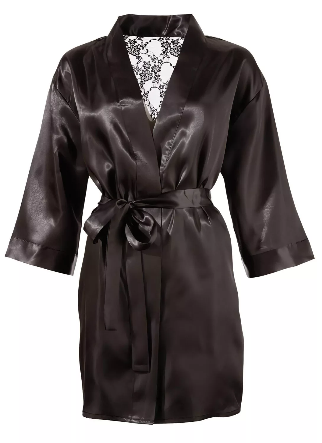 Cottelli - szatén-csipke, rövid köntös (fekete)