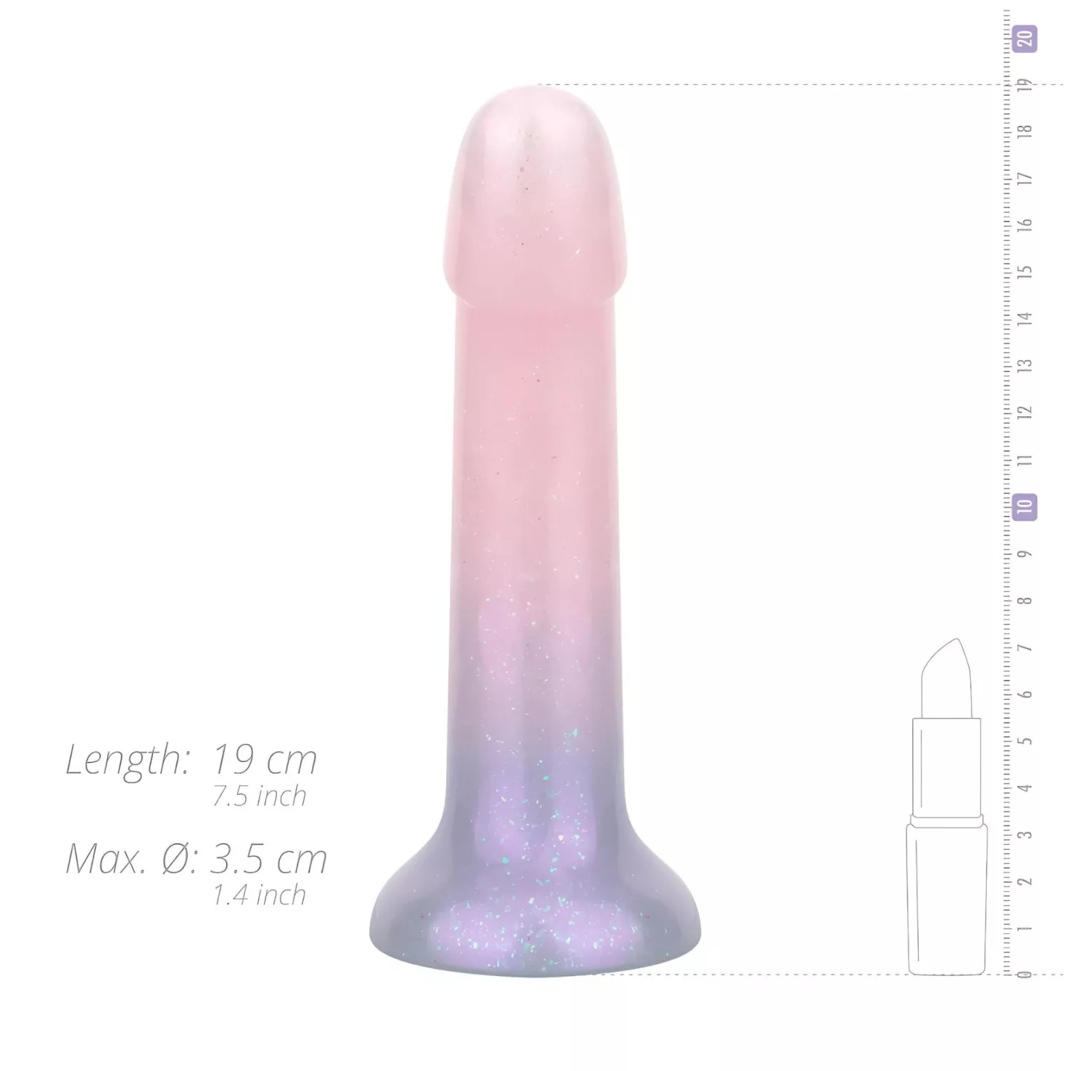 Ez a csillámos, élénk színekben pompázó zselés dildó nemcsak szemet gyönyörködtető, de kényeztetés közben is felejthetetlen élményt nyújt!