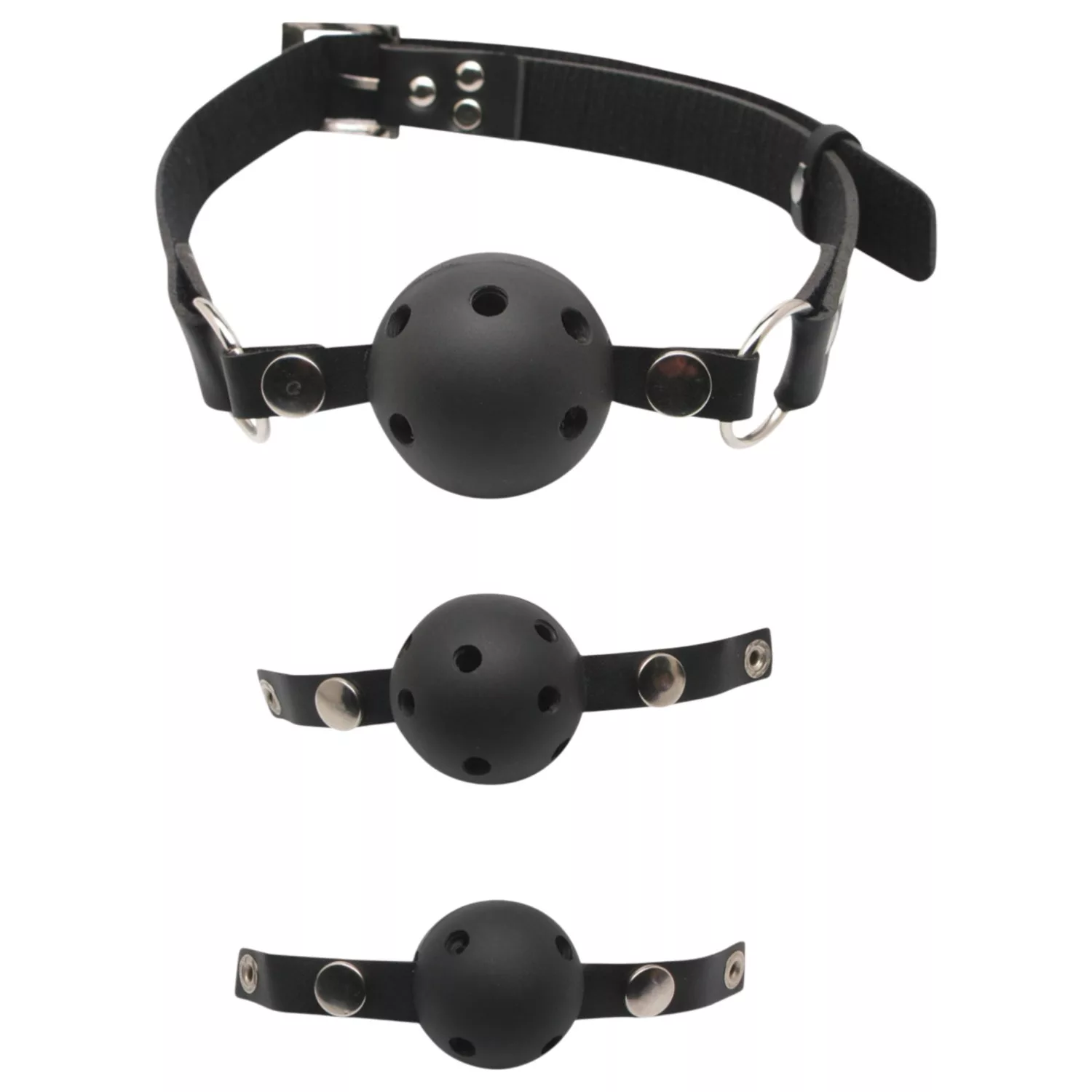 A Fetish Fantasy - szájpecek szett ideális választás, ha szeretnétek felfedezni a gagging és bondage játékok világát biztonságos, fokozatos módon. A csomag három különböző méretű (S, M, L) labdás szájpecket tartalmaz, így lépésről lépésre haladhattok az intenzívebb élmény felé. A légzőnyílásokkal ellátott labdák és az állítható fejpánt gondoskodnak a komfortos és biztonságos használatról.