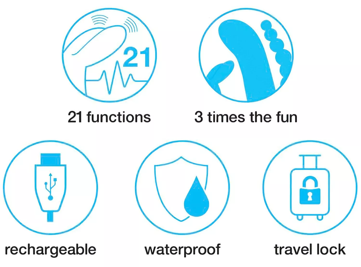 Minden funkció külön gombbal irányítható, így kedved szerint kombinálhatod a rezgéseket a különböző zónákon.