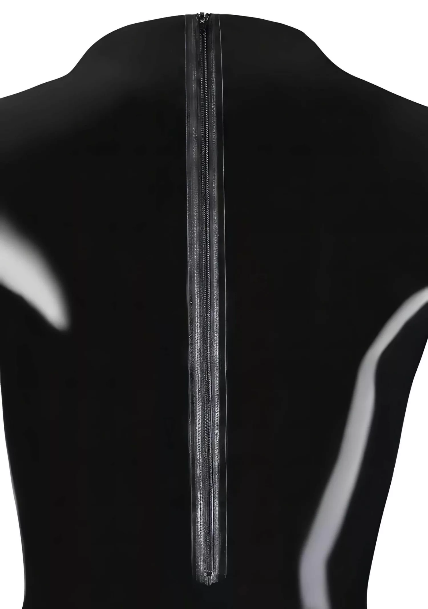 • 1 darab fekete latex body, hosszú ujjal, magas nyakkal, kétirányú cipzárral hátul és a szeméremrészen.