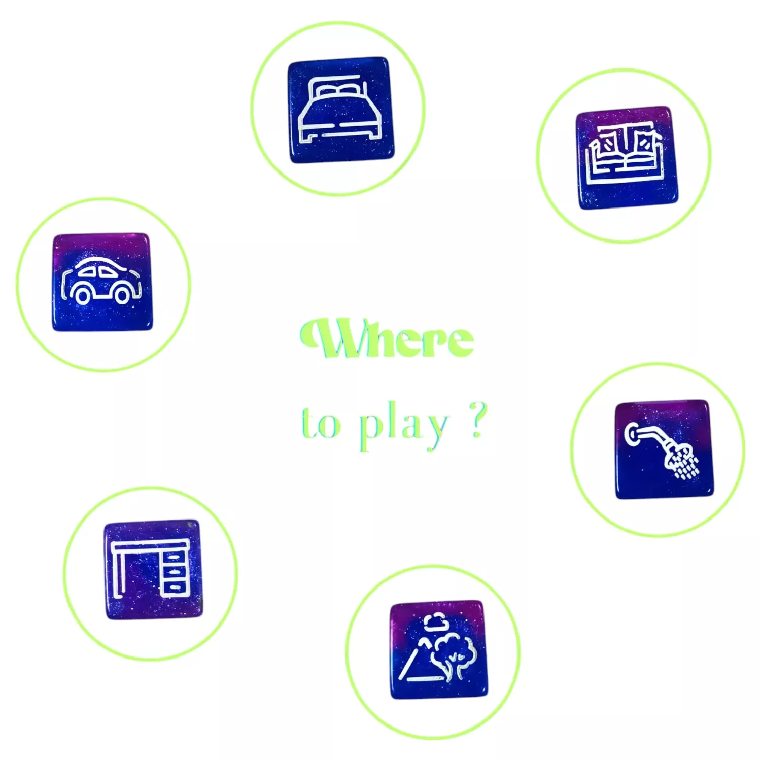 • Háromféle kocka: Egyik az akciót, a másik a testtájat, a harmadik pedig a helyszínt határozza meg – így több száz kombináció lehetséges!