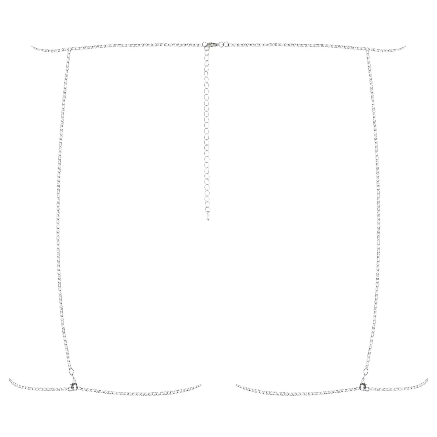 Ezüst-cink ötvözetből készülő csípőlánc, combpántokkal. Csillogó, fehér strasszkövekkel kirakva!