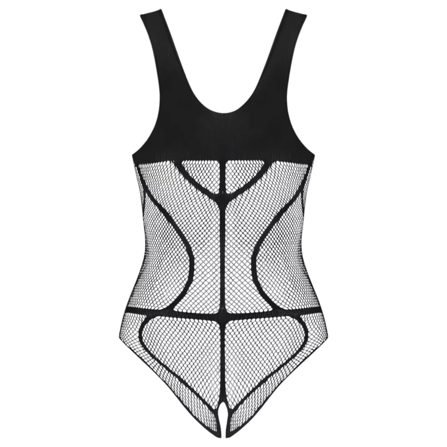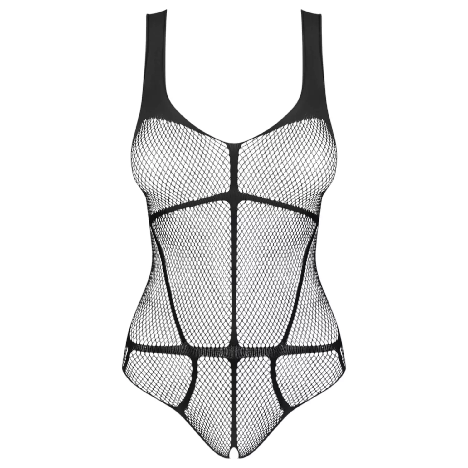 Obsessive B336 - átlátszó, nyitott necc body (fekete) - S-L