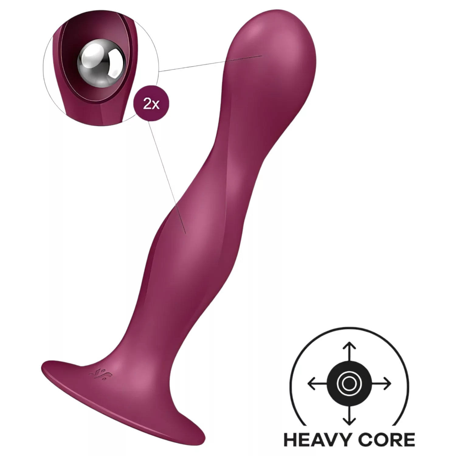 Satisfyer Double Ball-R - tapadókorongos súlyozott dildó (piros)