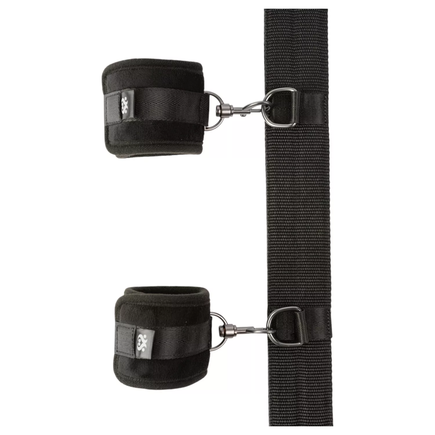 2. Csatold a csuklópántokat a partner csuklójára, majd rögzítsd őket a rúdhoz.