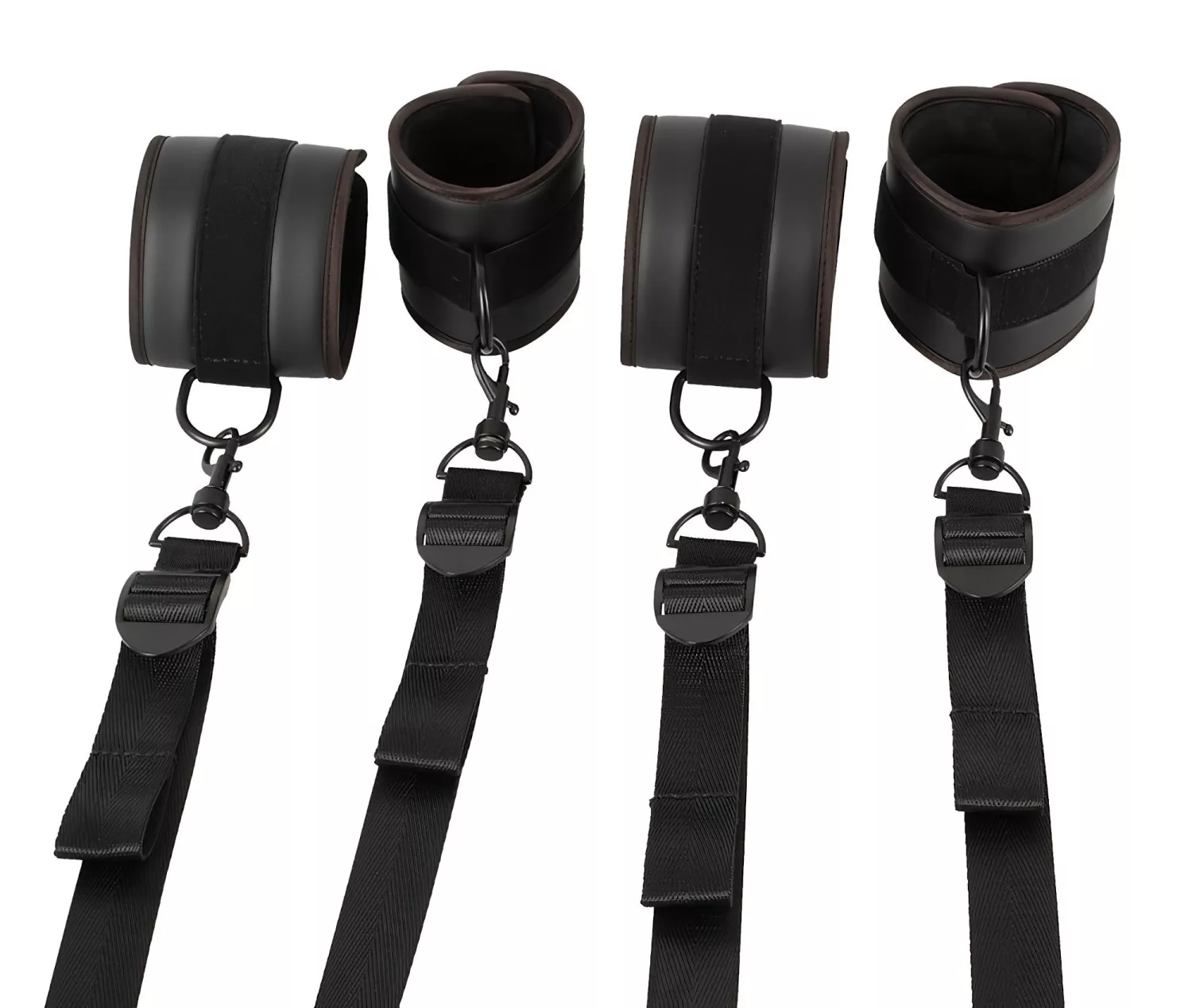 Azt, hogy partnered mennyire tárja szét kezeit-lábait, azt könnyedén szabályozhatod, ugyanis a pántok hossza műanyag csattal állítható.