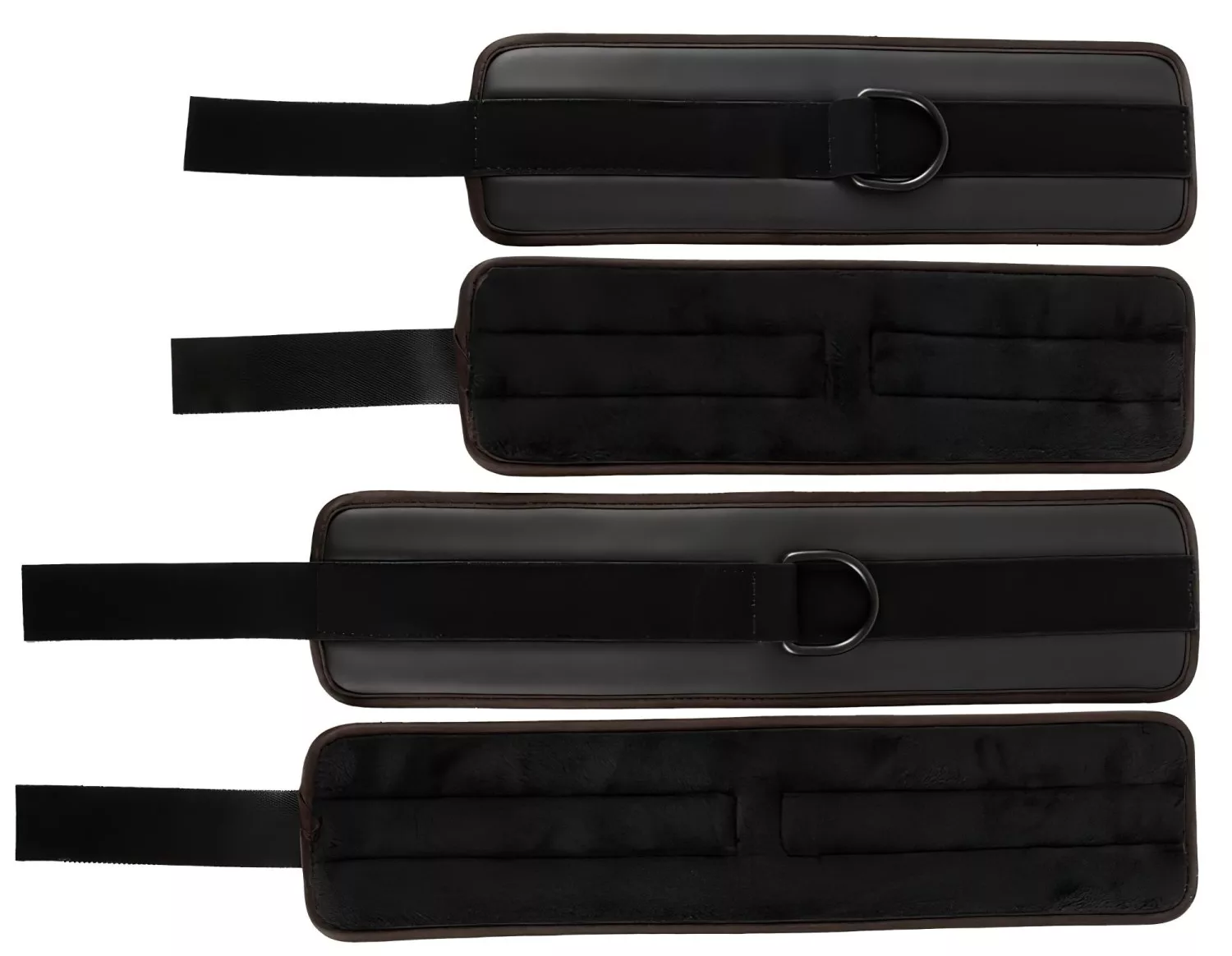 • 4db tépőzáras bilincs, D-rögzítőgyűrűkkel (kezek és a lábak lebilincselésére)