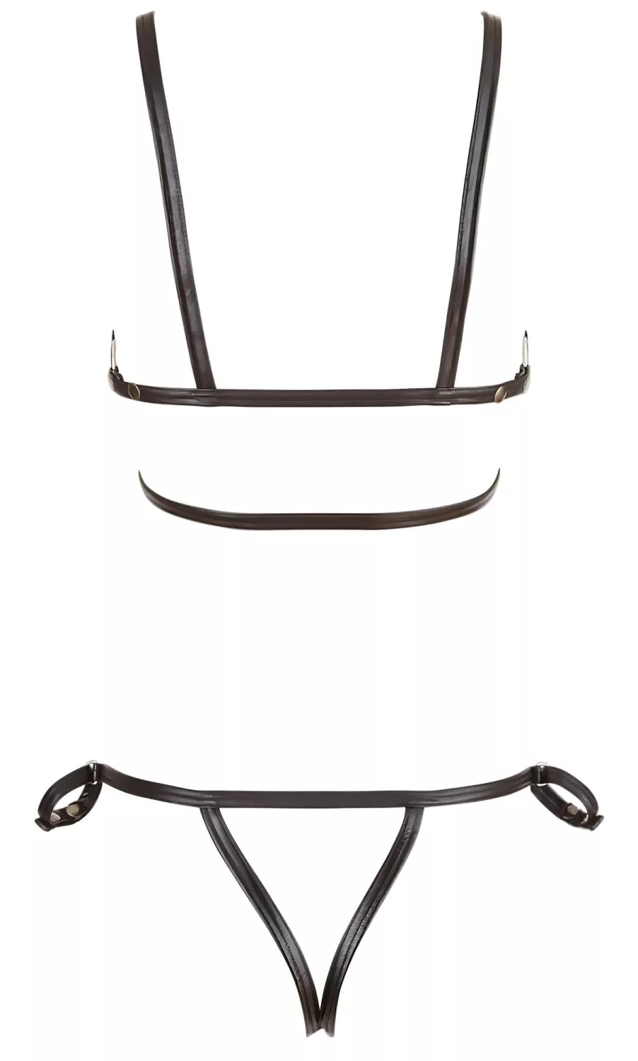 • Felső: pántos, nyitott melltartó fém gyűrűkkel és szegecsekkel