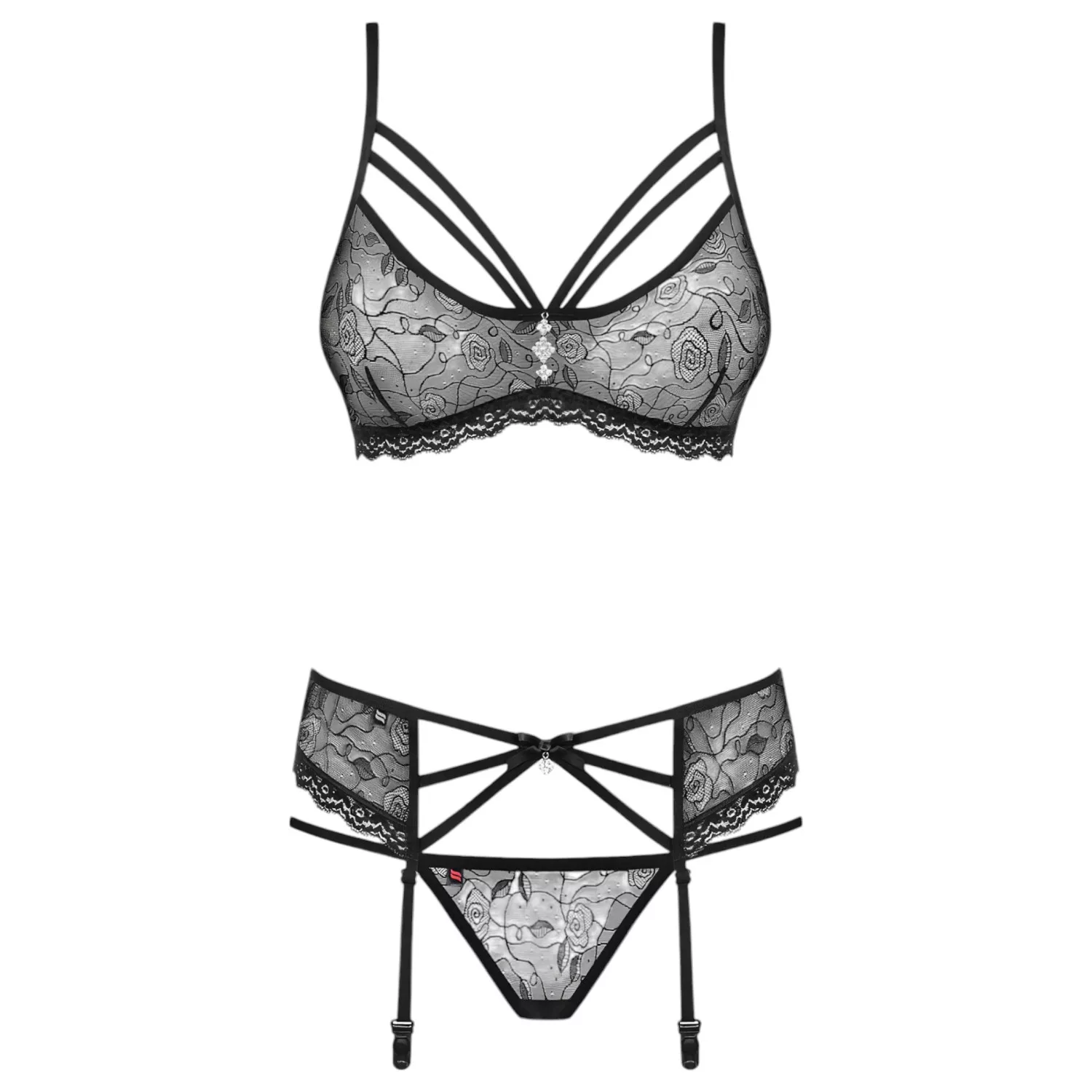 Obsessive 818-SEG-1 - strasszos fehérnemű szett (fekete)