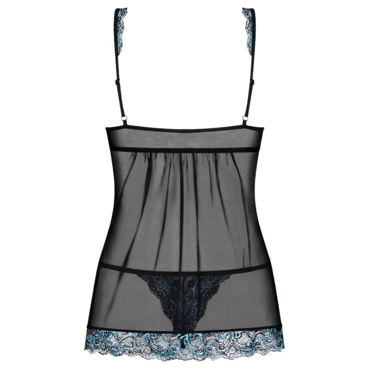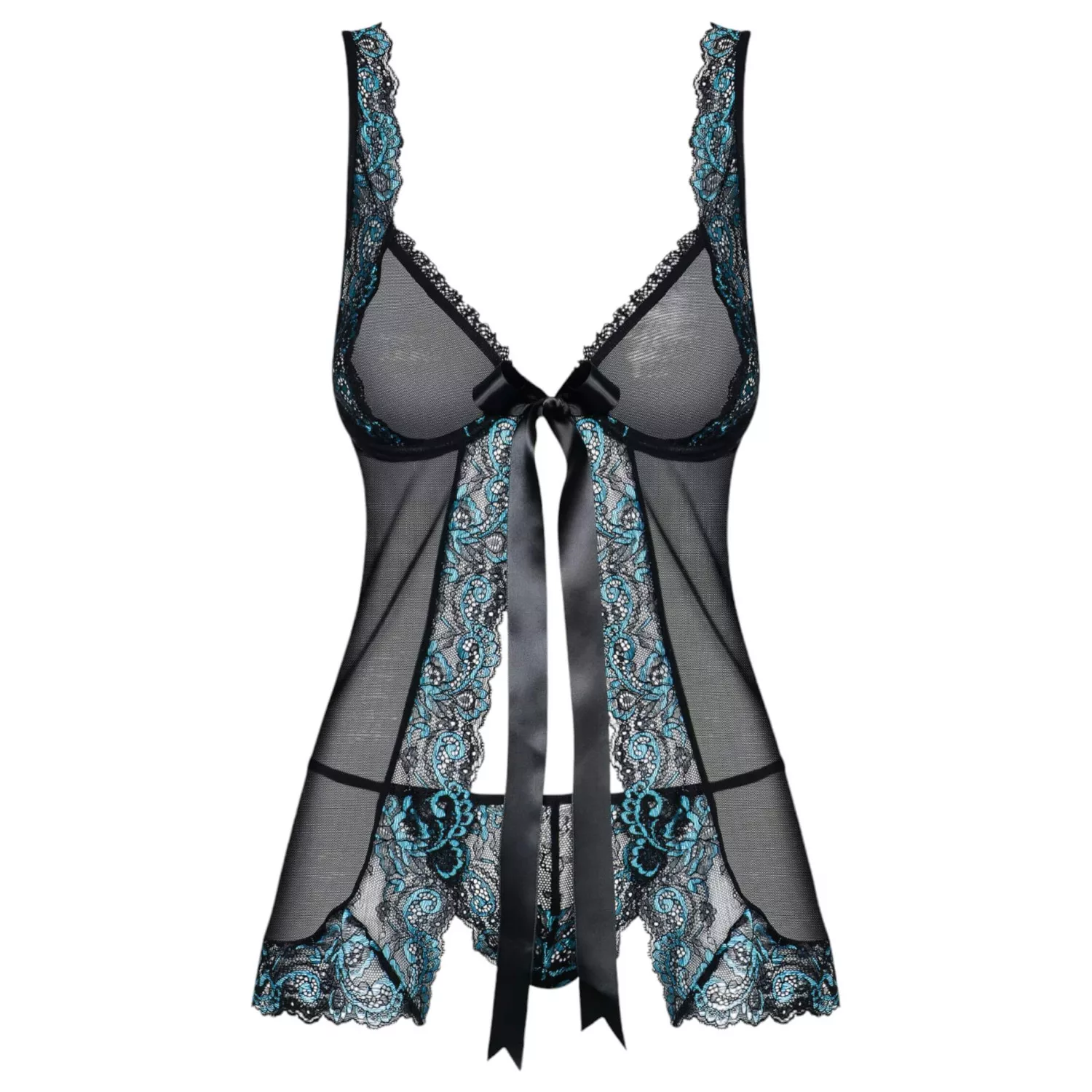 Vélemények Obsessive Amanta - hímzett babydoll és tanga (fekete-türkiz)