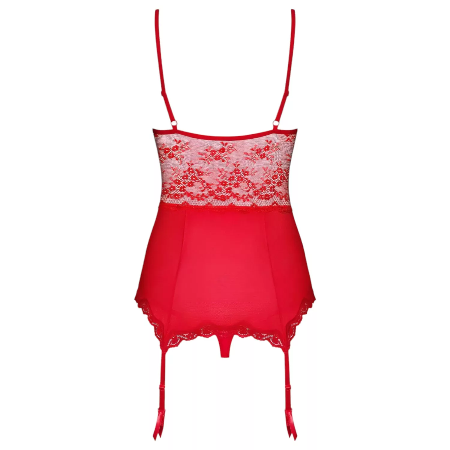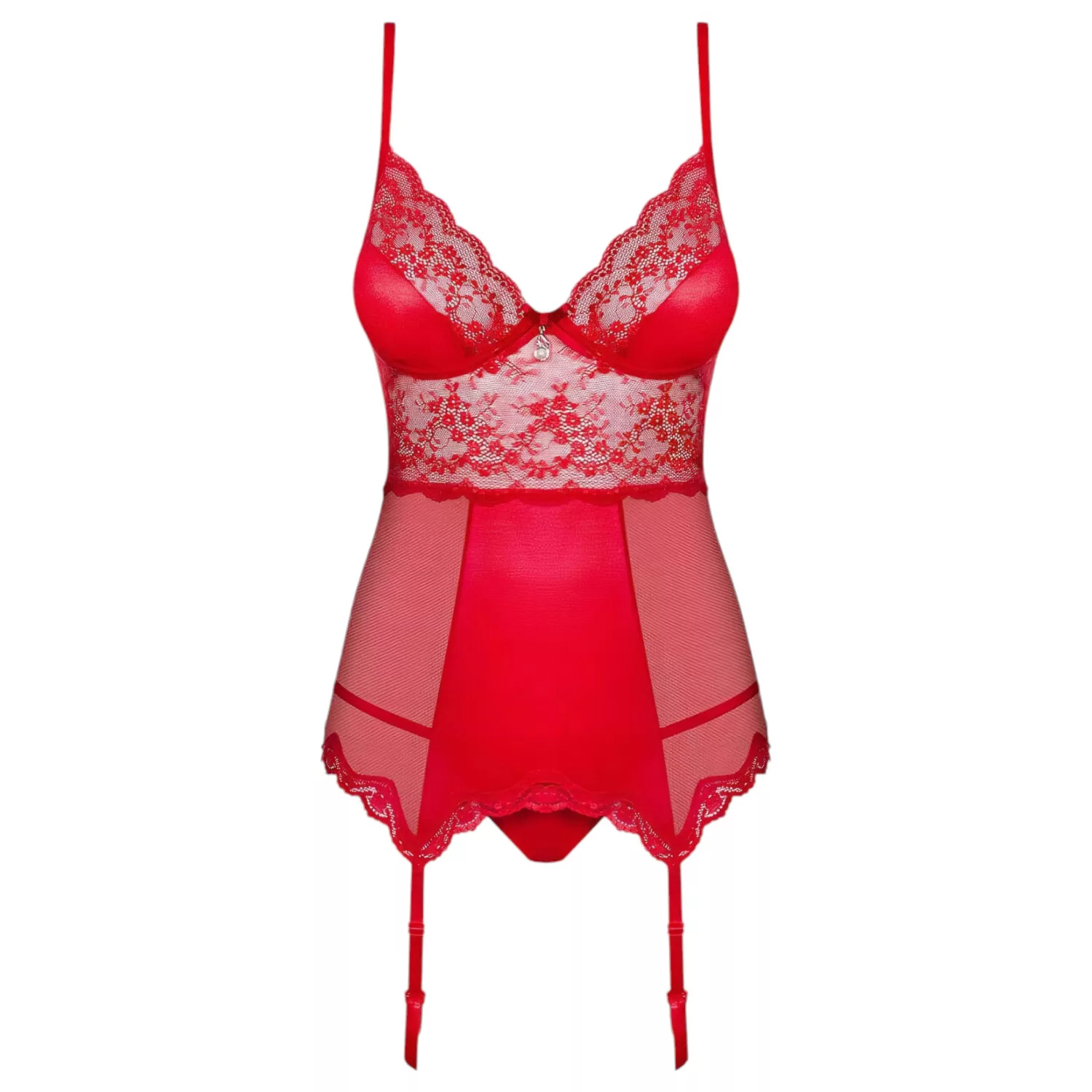 Vélemények Obsessive Lovica - csipkés harisnyatartós felső és tanga (piros)