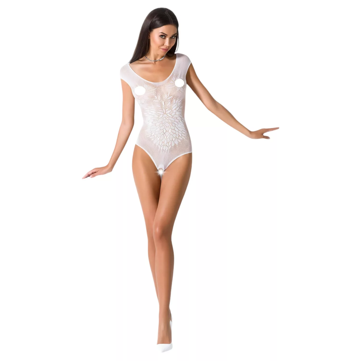 Vélemények Passion BS064 - nyitott necc body (fehér) - S-L